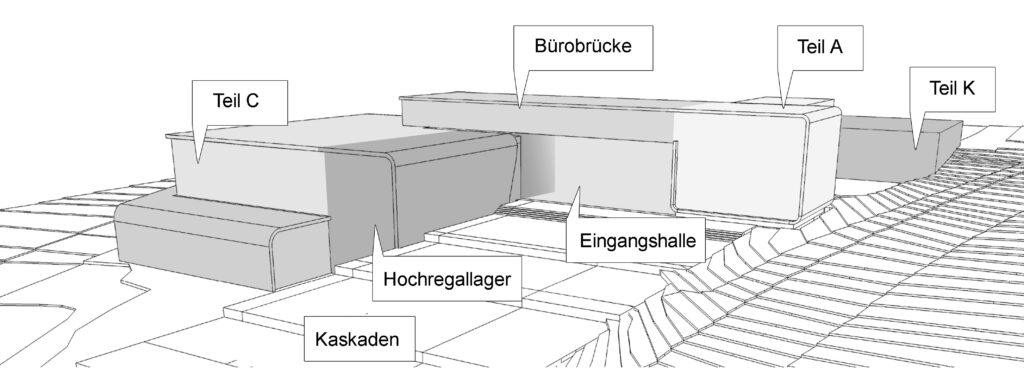 Description Situé à Coburg en Bavière, ce projet porte sur l’agrandissement et la rénovation partielle d’un siège d’entreprise. En plus de la création de nouveaux espaces de bureaux grâce à un pont entre les bâtiments existant, le projet met l´accent sur de nouveaux espaces d’accueil: le hall d’entrée et l’espace d’exposition en rez-de-chaussée.