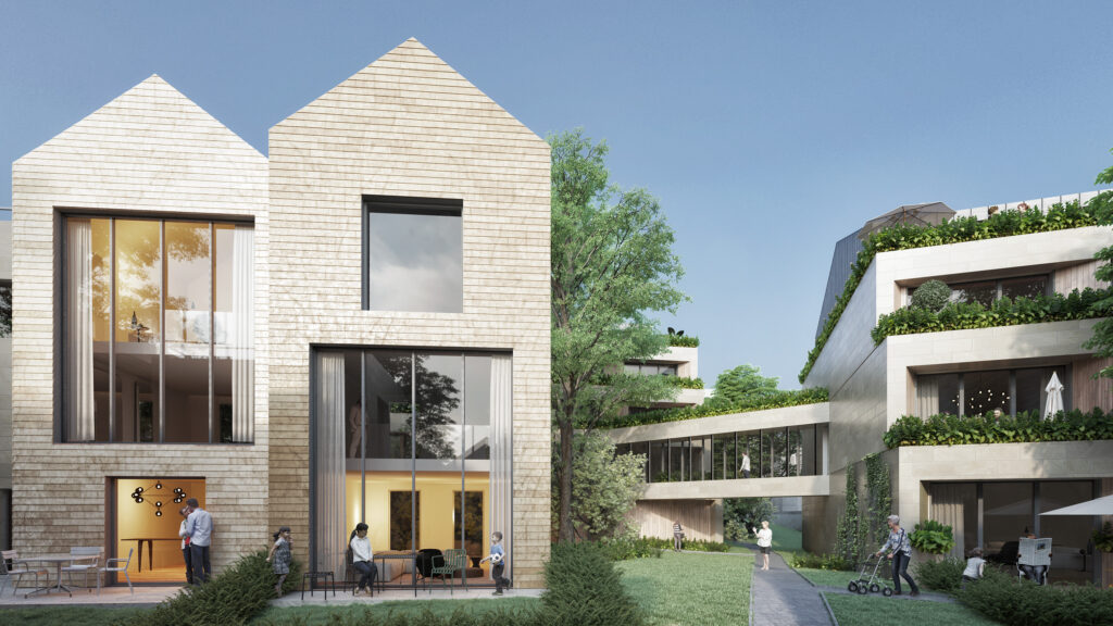 Programme Logements: maisons individuelles, petits et moyens collectifs, Résidence Senior, commerces, services, crèche, pôle santé, bureaux.