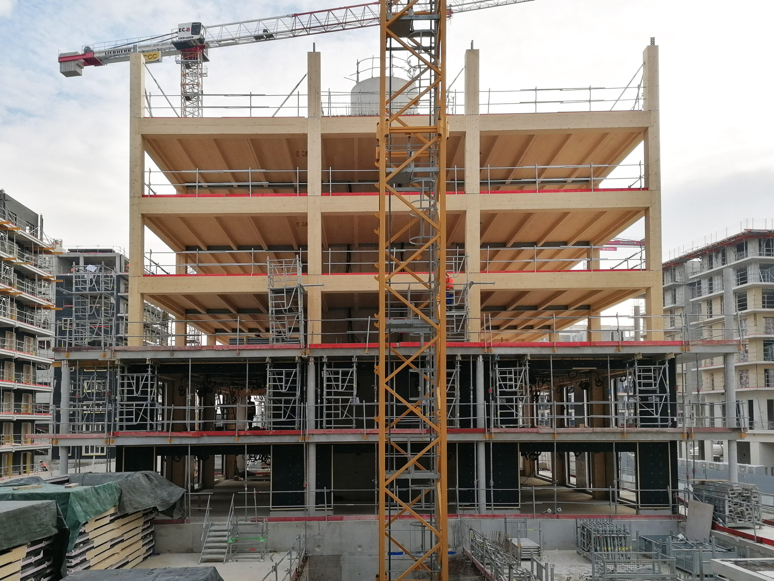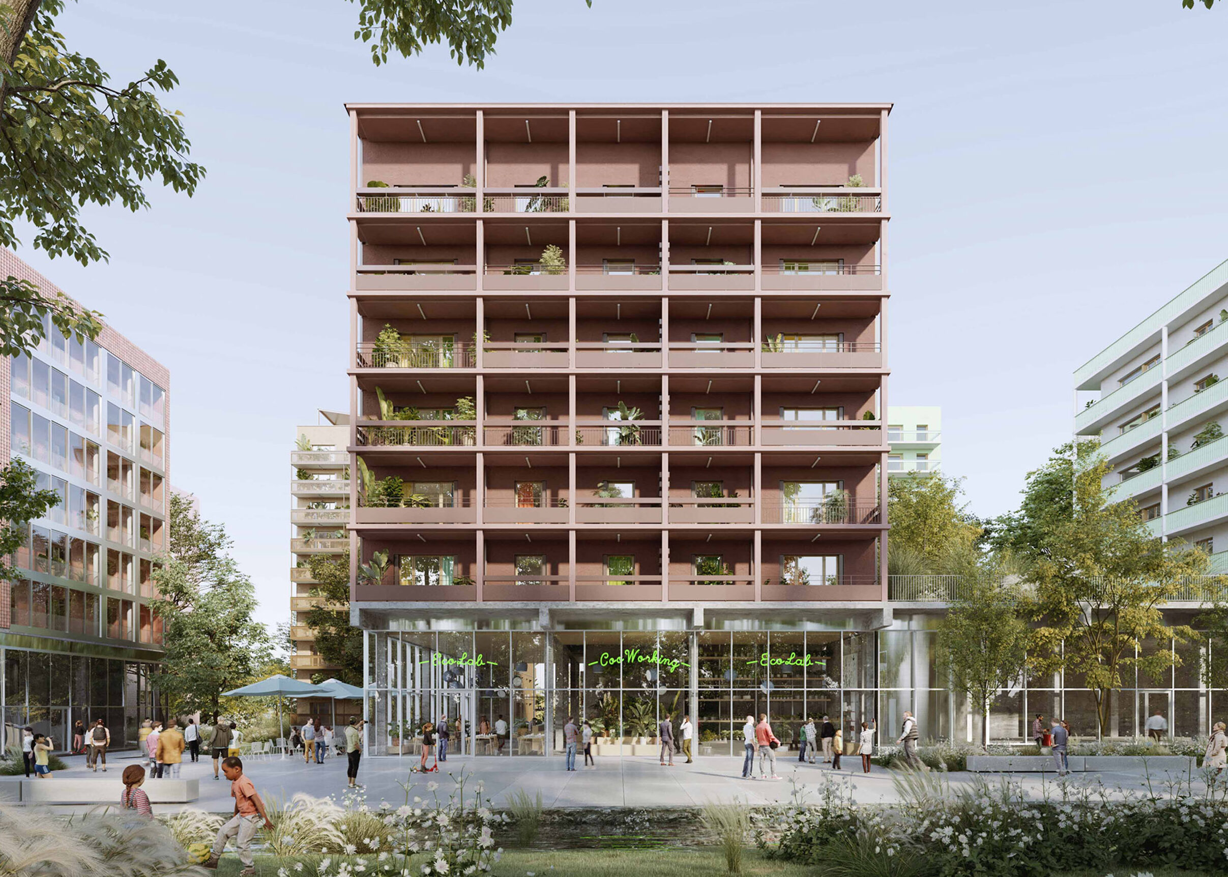 Description Ces deux bâtiments qui font partie du village des athlètes à Saint-Ouen (93) seront transformés en logement sociaux et en logements en accession privé après les JO. Le bâtiment en R+6 est construit en structure bois (poteau-poutre, façades en ossature bois et noyaux en béton) et celui en R+10 en technique mixte bois et béton (structure béton et FOB). Les façades sont réalisées en enduit sur isolant devant les balcons et en tuiles plates à recouvrement ou en bardeaux de céramiques sur les façades en pignon. Les paliers et les escaliers sont éclairés naturellement et tous les logements profitent d’espaces extérieurs.