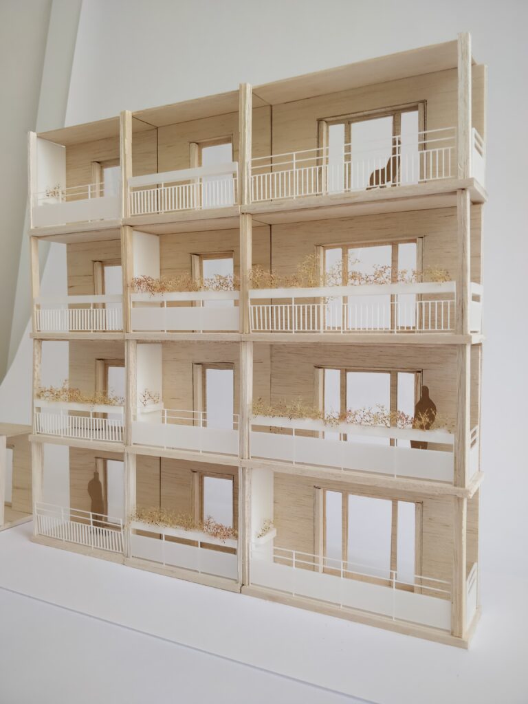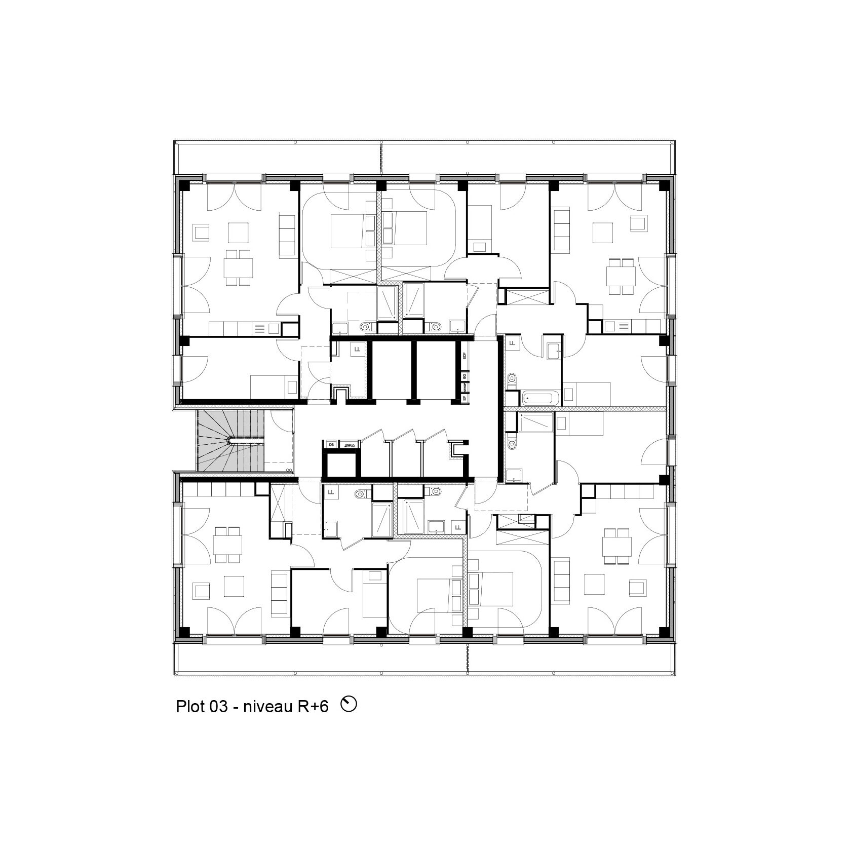 Le bâtiment R+6 est dit « cycle » car conçu selon un concept d’économie circulaire avec récupération des eaux de pluies et des eaux grises et noires. La toiture est équipée de panneaux PV alimentant les logements.